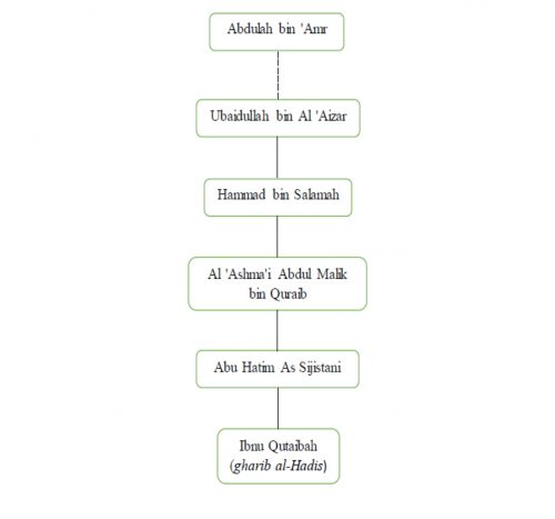 Ibnu Qutaibah meriwayatkan atsar di atas dalam gharib al-Hadis, dari Abu Hatim As Sijistani, dari Al Ashma’i, dari Hammad bin Salamah, dari Ubaidullah bin ‘Aizar, dari Abdulah bin ‘Amr radhiyallahu ‘anhu, dengan redaksi:
