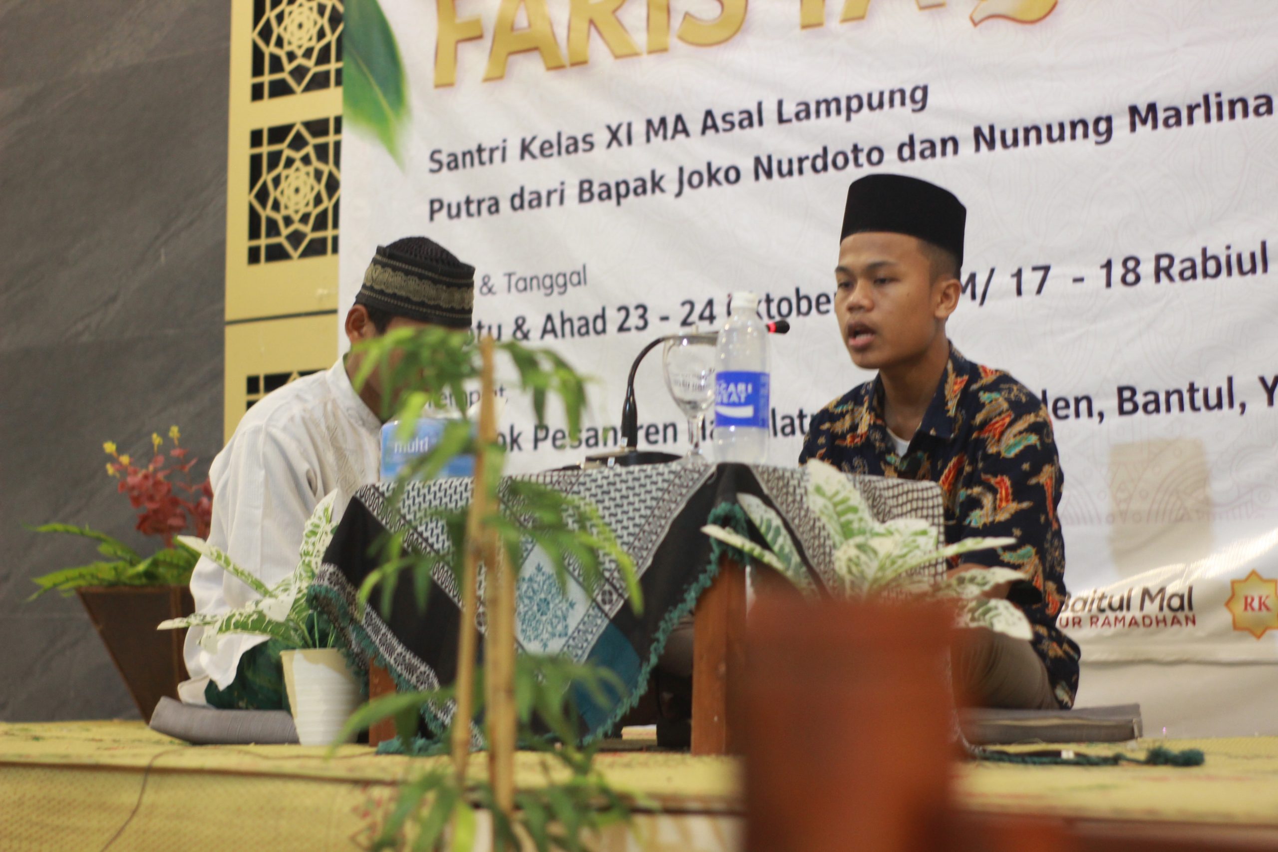 Semaan hafalan Al Quran 30 Juz dalam dua hari kali ini dibacakan oleh ananda Faris Taqiyudin, santri kelas 11 Madrasah Aliyah asal dari Lampung, putra dari Bapak Joko Nurdoto dan Ibu Nunung Marlina.