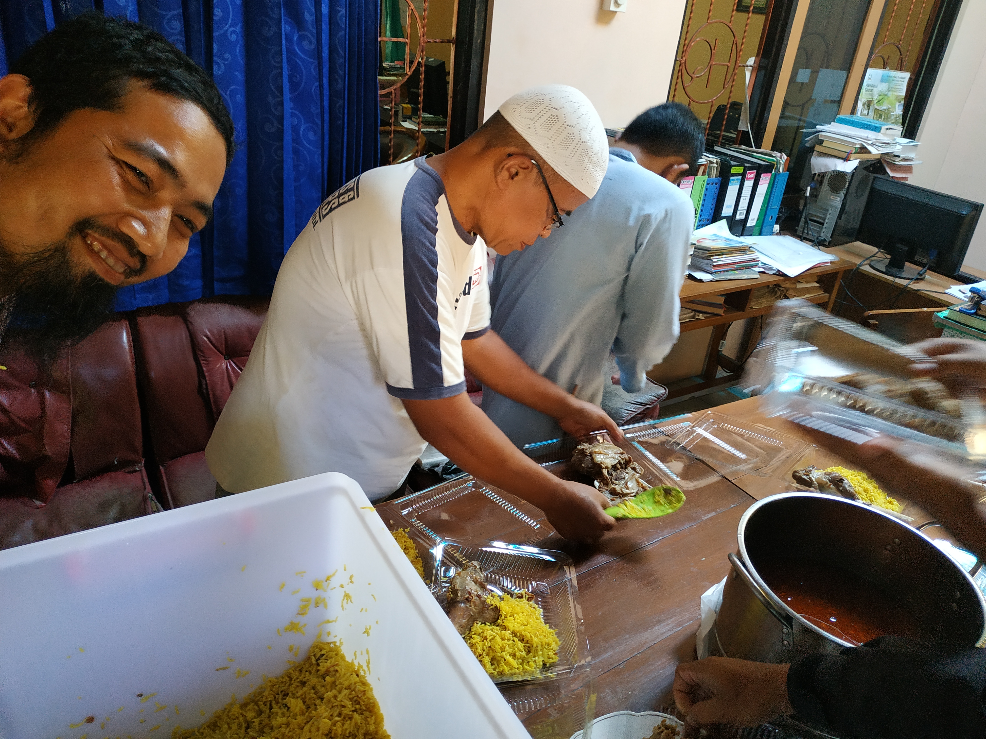 Selain diolah dan dibagikan kepada para santri, daging kurban juga di bagikan kepada para staf prsantren. Para ustadz, guru-guru dan masyarakan sekitar Pondok Pesantren Hamalatul Quran.