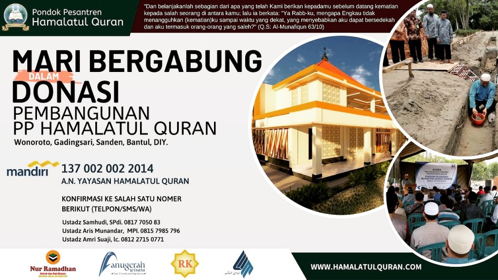 Mari bergabung menanam saham Jariyah dalam pembangunan PP Tahfidz Hamalatul Qur’an, Sanden, Bantul.