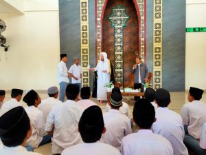 Bertempat di Masjid Jami Hamalatul Quran Sanden, Syekh Prof. Ashim bin Abdullah al Qaryuti mengawali kedatangan beliau dengan jalan-jalan keliling Pesantren dan dilanjutkan dengan memberikan tausiyah nasehat kepada para santri, para ustadz dan jamaah yang hadir tentang akhlak penghafal Al Qur’an.