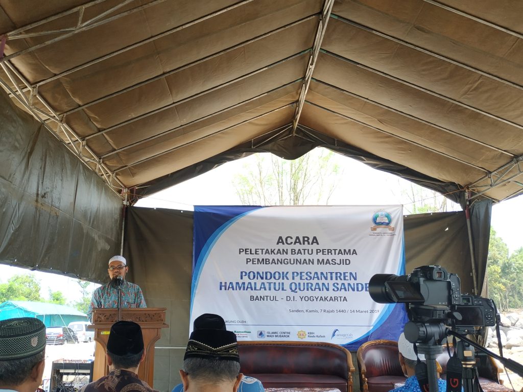 HAMALATULQURAN.COM — Bantul, Pembangunan Pondok Pesantren Hamalatul Quran di Wonoroto, Gadingsari, Sanden, Bantul akhirnya dimulai. Proses Pembangun tersebut diawali dengan dilakukanya peletakan batu pertama bangunan Masjid Hamalatul Quran oleh pengasuh Pondok Pesantren Hamalatul Quran Ustadz Amri Suaji, Lc. pada Kamis (14/03/2019)
