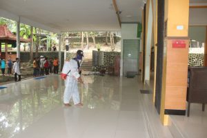 Bekerjasama dengan Pemerintah Desa Tamantirto dan Yayasan Sosial Peduli Muslim, penyemprotan dilakukan di area masjid, gazebo tahfidz, toilet dan area pesantren lainya.