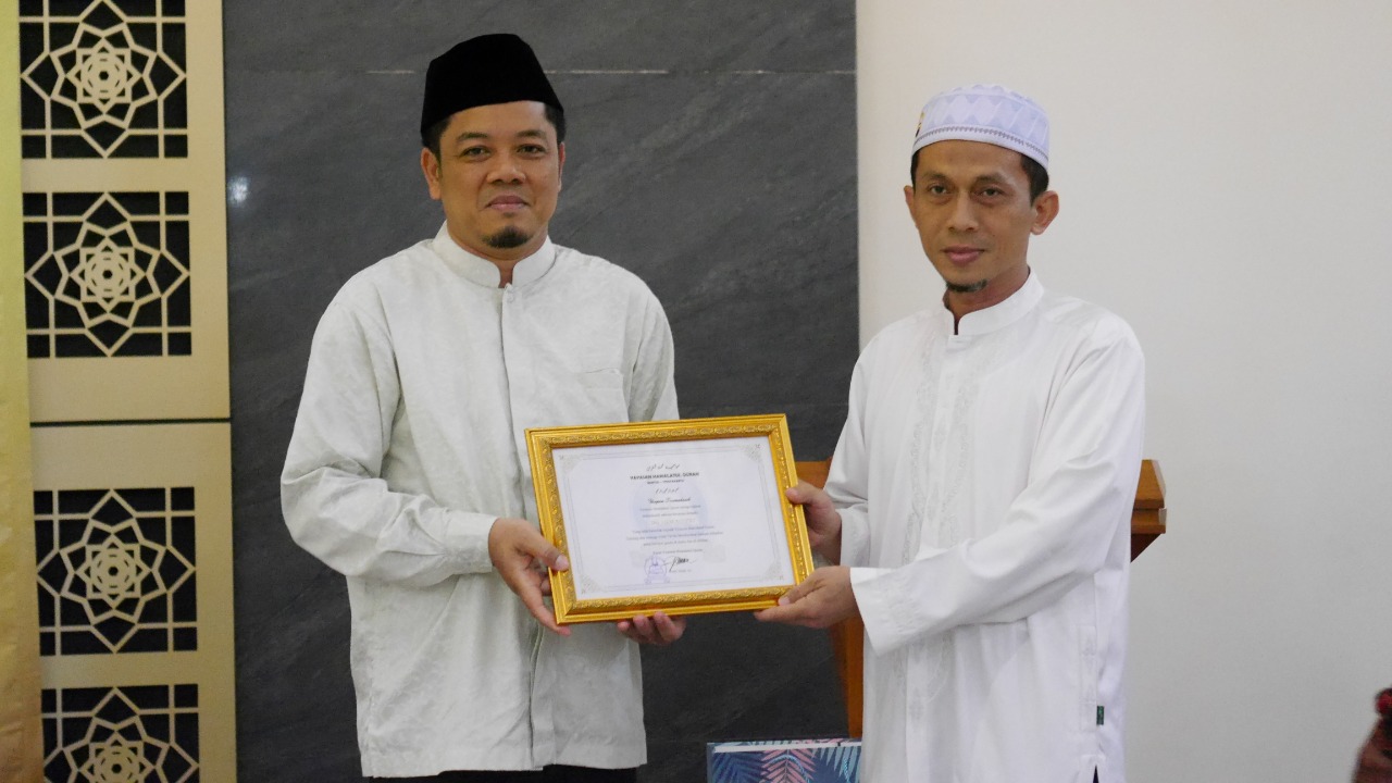 Penyerahan ucapan terimakasih secara simbolis, yang diberikan langsung oleh Ustadz Abdus Salam, Lc.