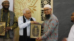 Setelah acara sambutan selesai, Secara simbolis Pondok Pesantren Hamalatul Quran memberikan plakat terimakasih kepada muhsinin yang telah membantu terbangunnya masjid ini.
