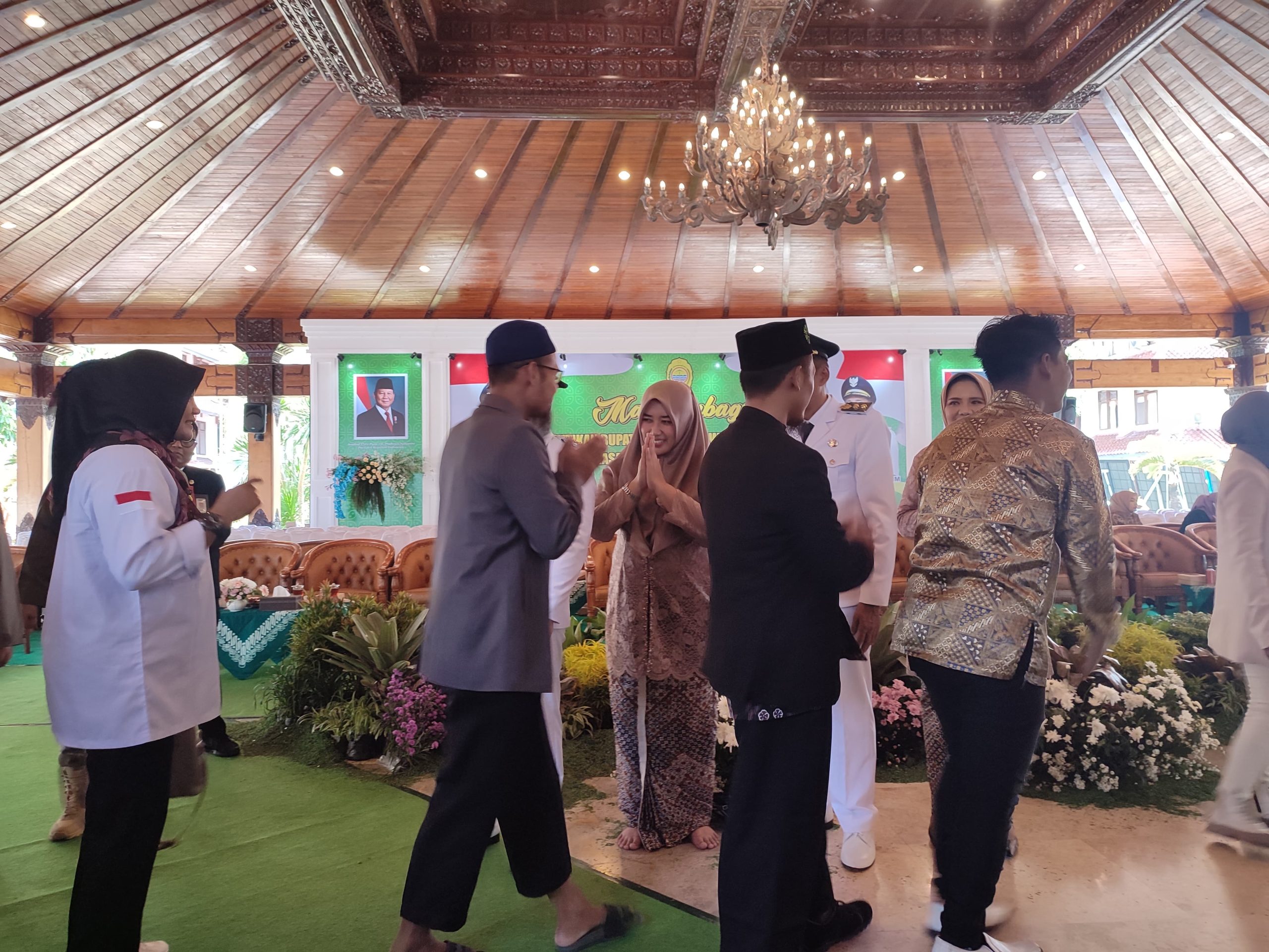 Di akhir acara, para tamu undangan diberikan sesi untuk mengucapkan selamat dan kami juga berkesempatan menyalami Bapak Bupati dan Wakil Bupati sembari mengucapkan selamat kepada beliau.