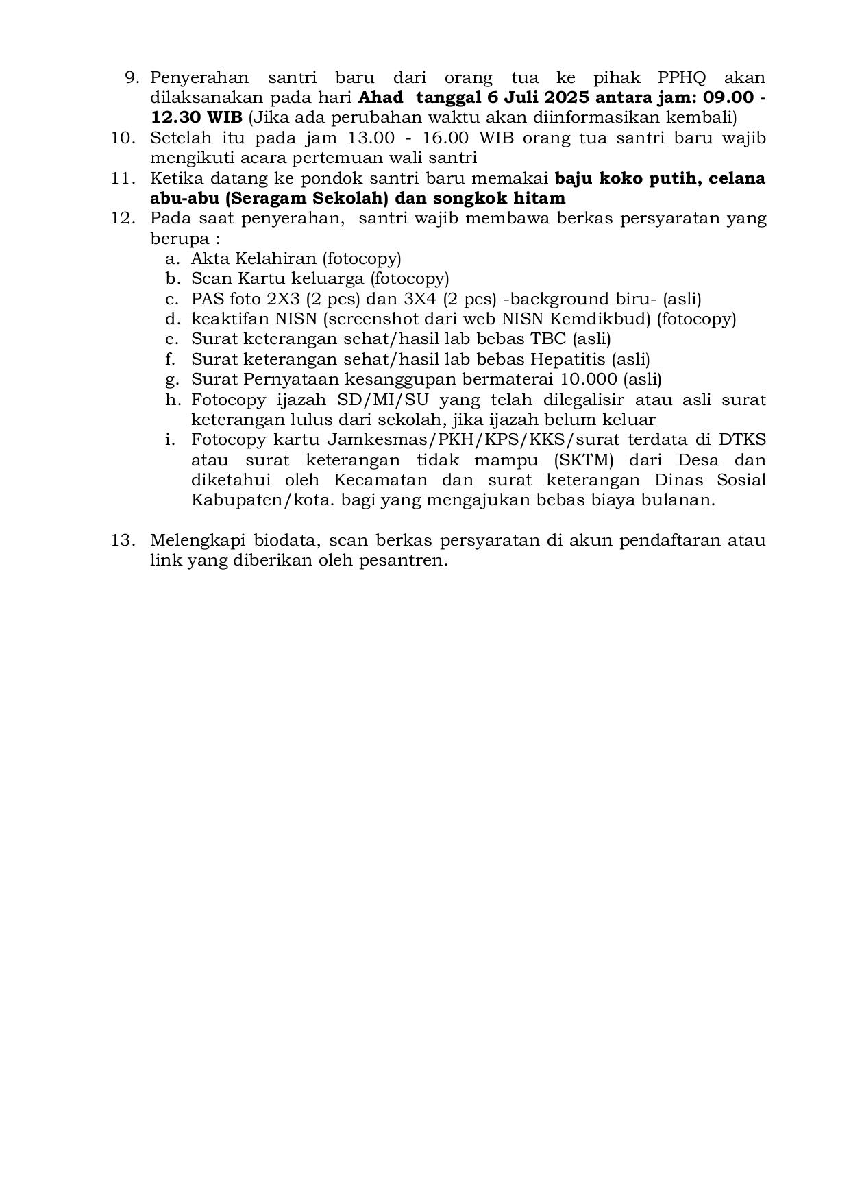 PENGUMUMAN PENERIMAAN SANTRI BARU