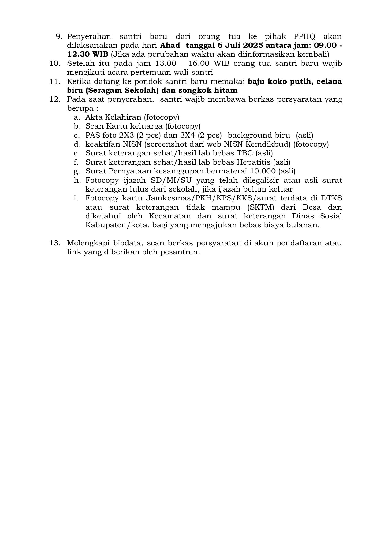 PENGUMUMAN PENERIMAAN SANTRI BARU